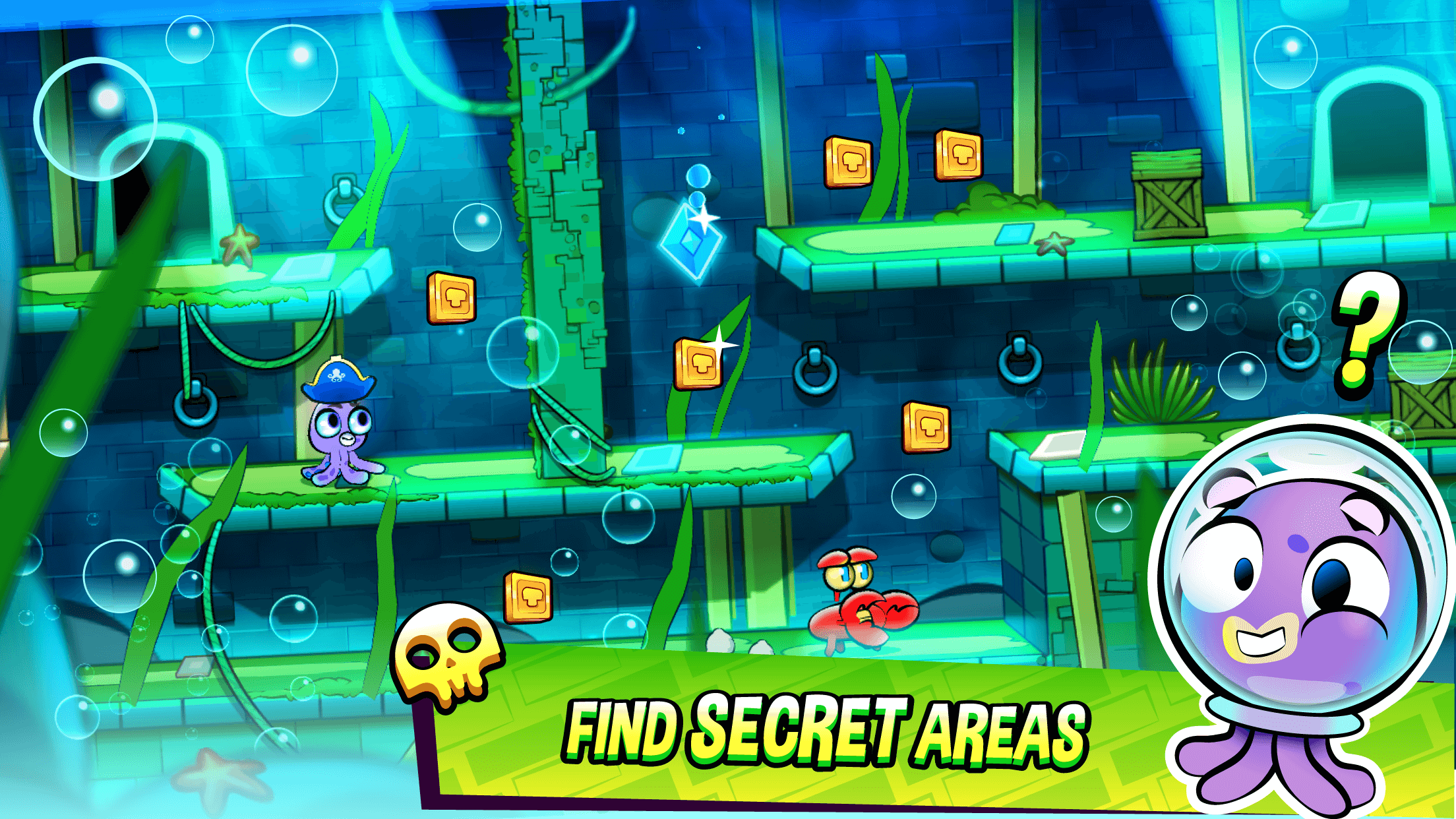 Of course, any action platformer sea skipper worth his salt wouldn’t let a bit of transmutation get him bent out of shape in escape adventure! Avoiding capture, you set on a platformer games hopping escapade to save your buddies and make the malicious deity pay for his misdeeds! Run and jump and put your skills to the test in exciting octopus adventure!